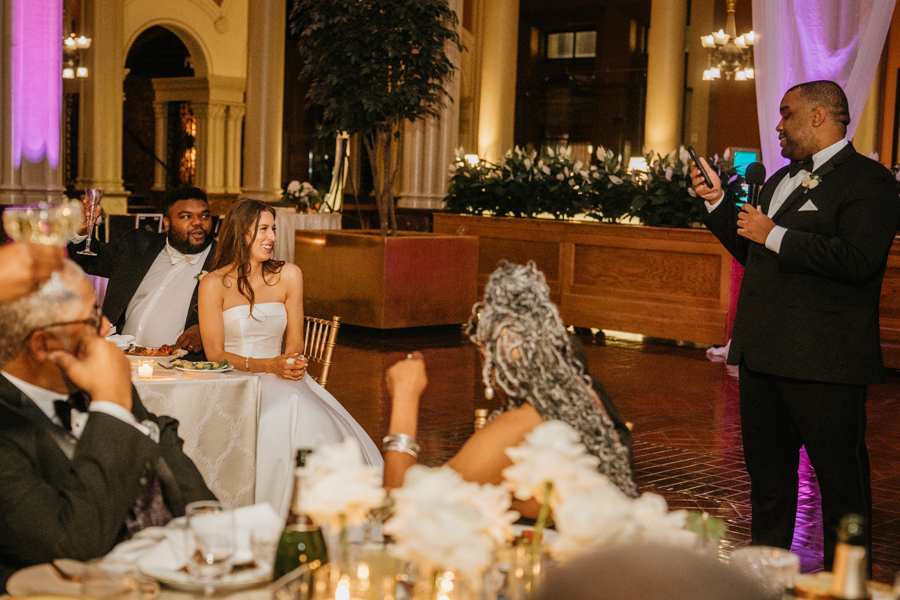 STUNNING, ELEGANT, TIMELESS, and filled with beautiful emotion and the sweetest love. That is how we would describe this incredible wedding day!   The Landmark Center was the perfect backdrop for this spectacular event and has always been a favorite venue for us!  It was truly a fairytale day from start to finish and we LOVED being a part of it!  One of our favorite parts of the day was taking our couple out for golden hour photos in Rice Park and having Chris announce to everyone we passed by that Ellie was now his WIFE!  Still has us smiling!